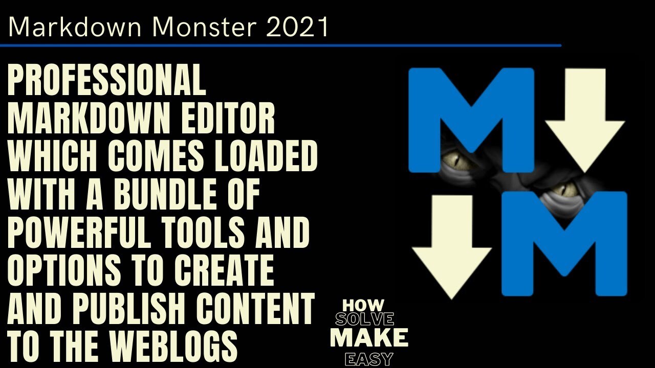 Markdown Monster is a Markdown editor and viewer that lets you edit Markdown with syntax highlighting and fast text entry. A collapsible, synced, live preview lets you see your output as you type or scroll. Easily embed images, links, emojis and code using Markdown text or use our gentle UI helpers that simplify many operations with a couple of keystrokes. Paste images from the clipboard or drag and drop from Explorer or our built-in folder browser. Inline spell-checking and word counts keep your content streamlined unobtrusively.